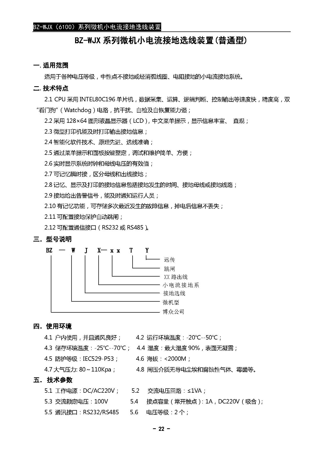>> BZ-WJX系列微机小电流接地选线装置(普通型)