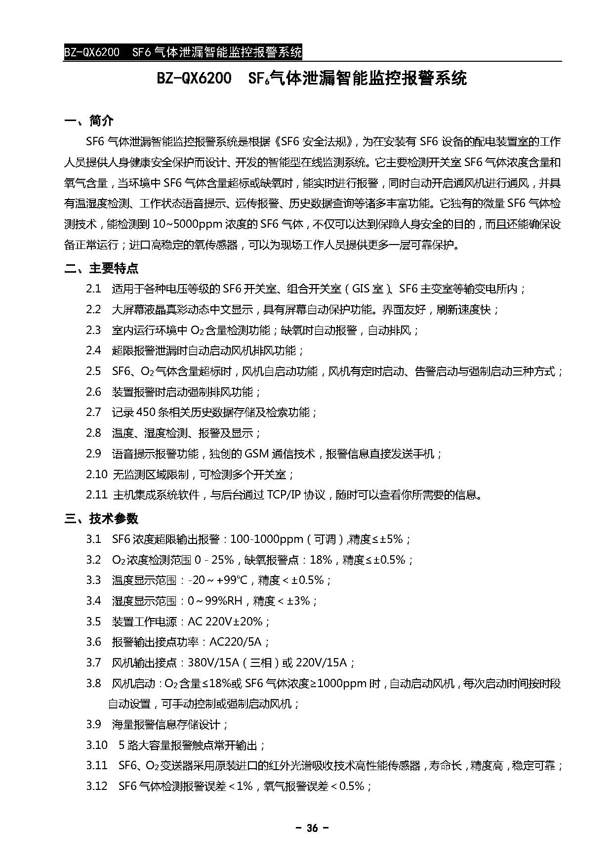 >> BZ-QX6200 SF6气体泄漏智能监控报警系统