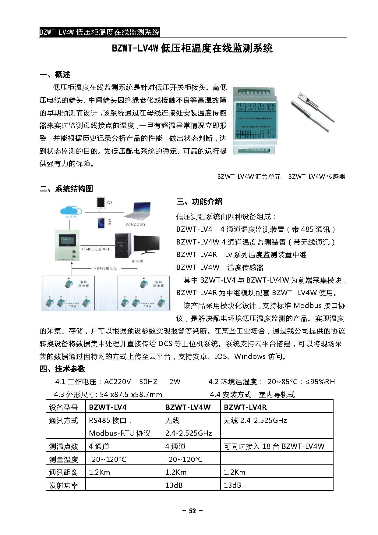 >> BZWT-LV4W低压柜温度在线监测系统