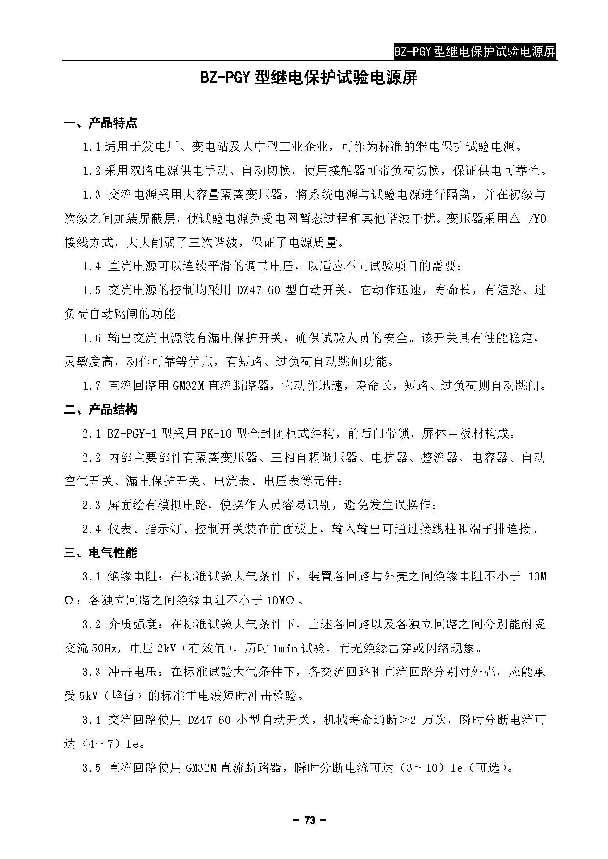 >> BZ-PGY型继电保护试验电源屏