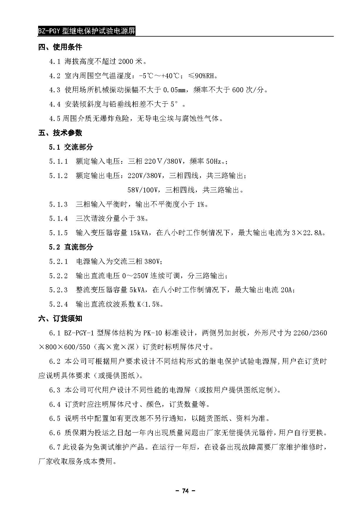 BZ-PGY型继电保护试验电源屏