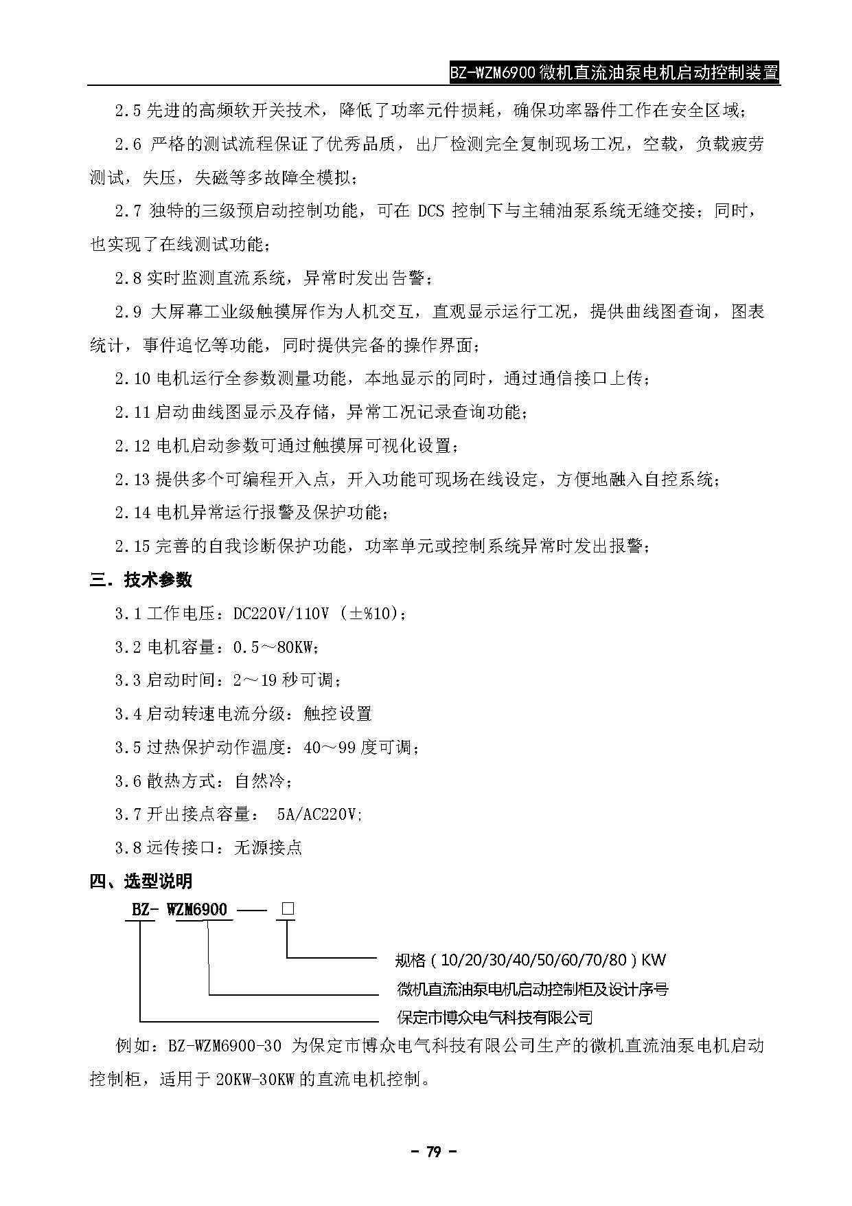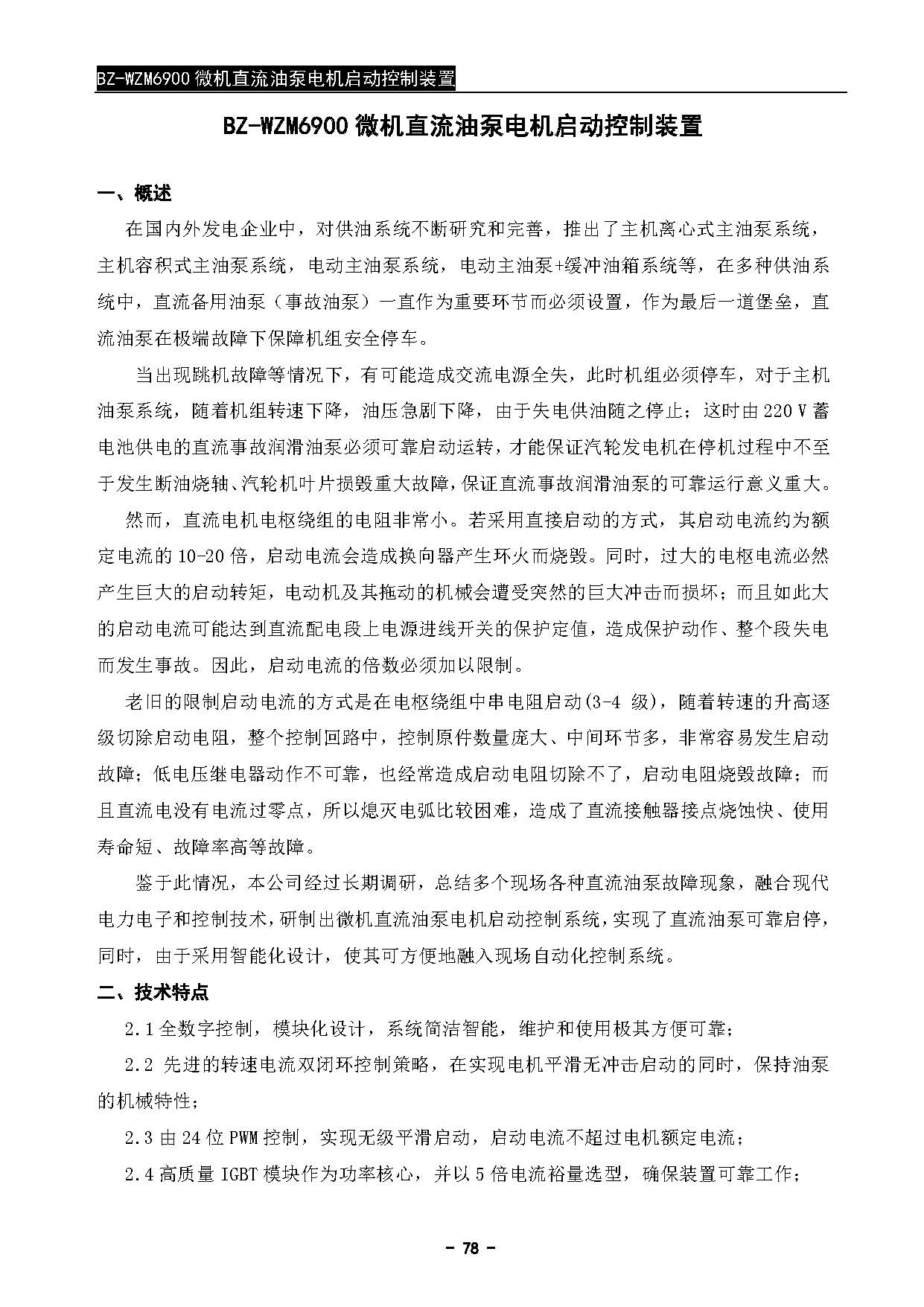 BZ-WZM6900微机直流油泵电机启动控制装置